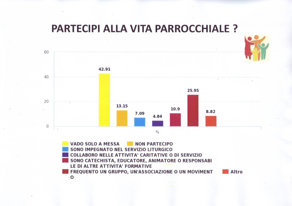 Per oltre il 40% dei partecipanti, la Parrocchia ha aiutato a crescere in umanità e per oltre il 37% ha contribuito alla formazione della personalità cristiana. Secondo i dati del sondaggio, inoltre, per il 16.56% la Parrocchia non ha avuto alcune influenza sul singolo mentre per un 6.29% ha deluso profondamente.