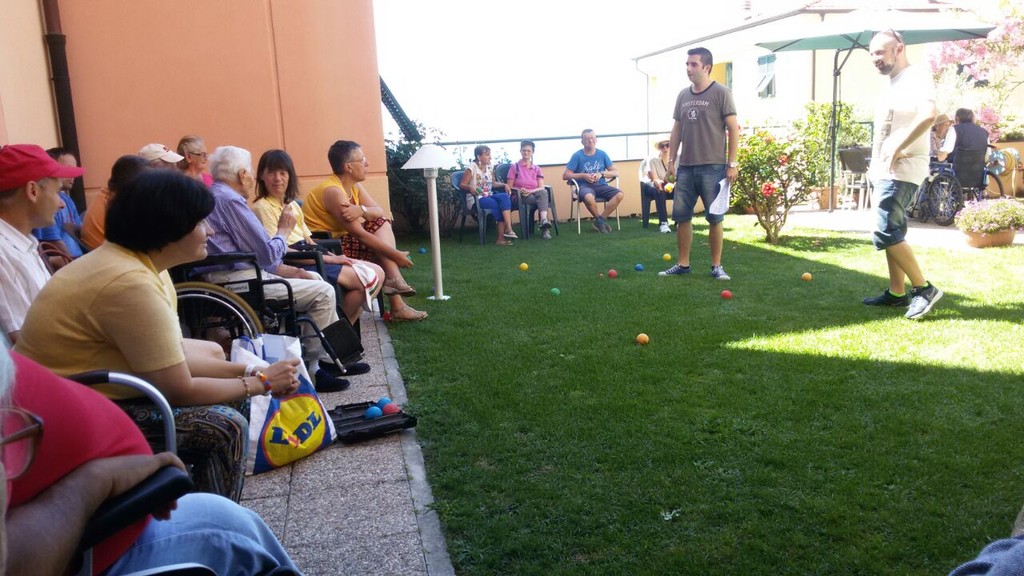 in una splendida mattinata di sole, nel giardino che si affaccia sul mare, gli ospiti della Residenza Protetta le Grange hanno sfidato i ragazzi dell'Anffas in una gara di bocce fino all'ultimo colpo! I ragazzi dell'Anffas hanno partecipato numerosissimi accompagnati dai loro educatori ed è stata una partita davvero appassionante e divertente all'insegna dell'amicizia e del sorriso.
