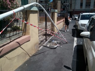 Imperia: palo della luce cade su una macchina in via Manzoni, intervento dei Vigili del Fuoco (Foto)