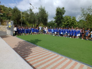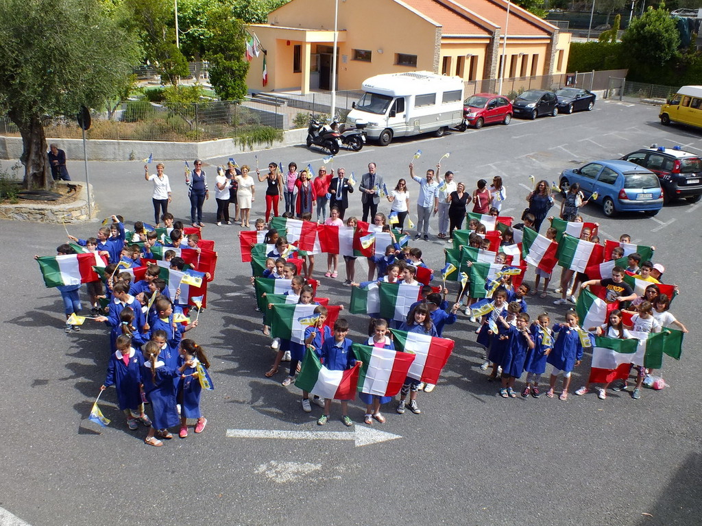 Alla presenza del Governatore del Distretto 108Ia3 Mauro Bianchi, del P.Z. Ivano Rebaudo e degli O.D. Gianmino Casagrande e Silvana D’Aloisio, della Dirigente Dott.ssa Paola Baroni e dei Sindaci dei comuni di Cipressa Filippo Guasco, Riva Ligure Giorgio Giuffra, del vicesindaco di Pompeiana Ezio Conio, del Comandante la Caserma dei Carabinieri M.llo Maurizio Massabò nel cortile della bellissima scuola del Comune di Pompeiana gli alunni hanno ricevuto il tricolore italiano.