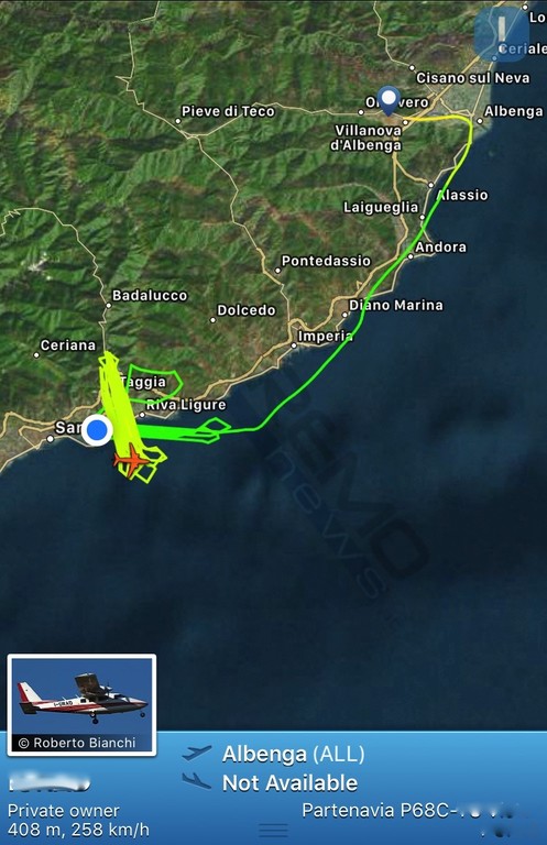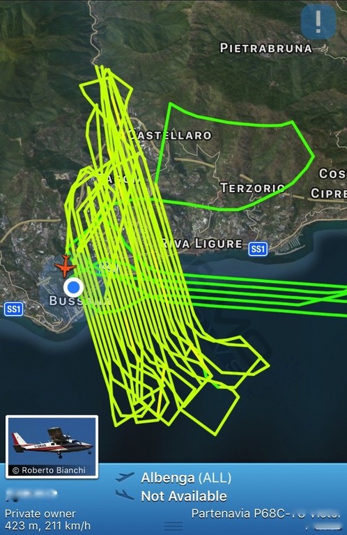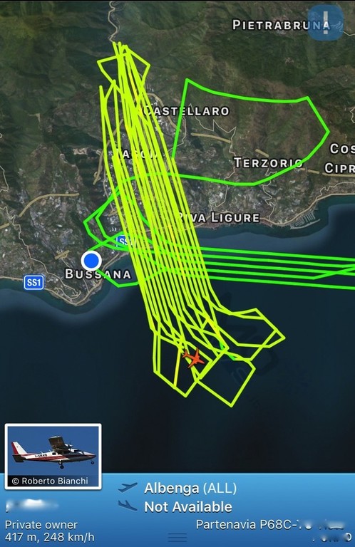 Sanremo: le strane manovre di un Partenavia P68C nel cielo sopra Bussana (Foto)