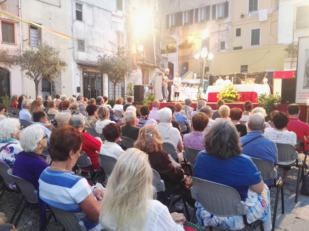 Momento sempre legato alla tradizione cittadina, durante la Celebrazione Eucaristica, la consegna della tradizionali “mescìe”, gesto solenne e commovente curato con grande rispetto ed amore dalla Famiglia Sanremasca, depositaria della storia migliore di Sanremo e ieri riproposto da due giovani parrocchiane.
