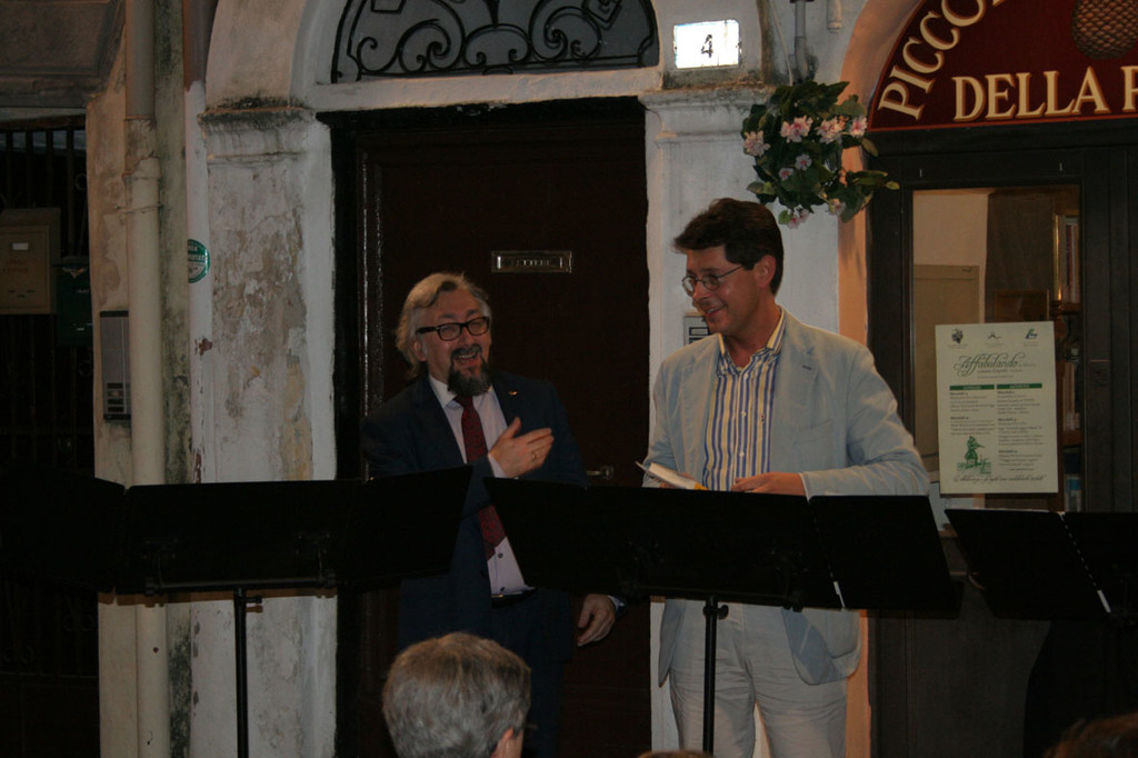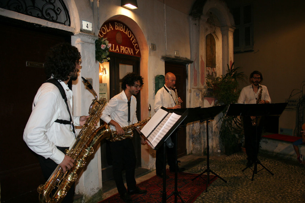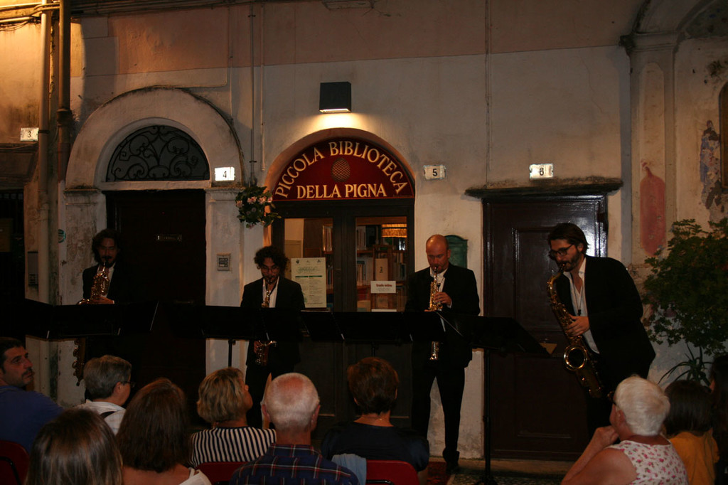 Si è svolta con particolare riuscita la serata inaugurale di "Affabulando in Musica" 2017, la rassegna letteraria di piazza del Capitolo promossa da Accademia della Pigna, Circolo Ligustico e Centro Stan Kenton. Davanti ad un folto pubblico, attento ed entusiasta, si è esibito il Midnight Saxophone Quartet con un programma di musica cameristica interpretato in maniera eccellente. Nell'intervallo del concerto il Cancelliere dell'Accademia Alberto Guglielmi Manzoni ha letto, con la sua consueta arte oratoria, alcuni racconti sul sax e sul jazz. Gran finale con la partecipazione, fuori programma, della soprano giapponese Yuko Boverio nell'interpretazione di una intensa "Ave Maria". Applausi a scena aperta. Una serata senz'altro speciale che ha decretato l'inizio della stagione estiva in Piazza del Capitolo, tra libri, note ed incanto architettonico nella Pigna di Sanremo. Nella photo-gallery sono immortalati alcuni momenti della magica serata.