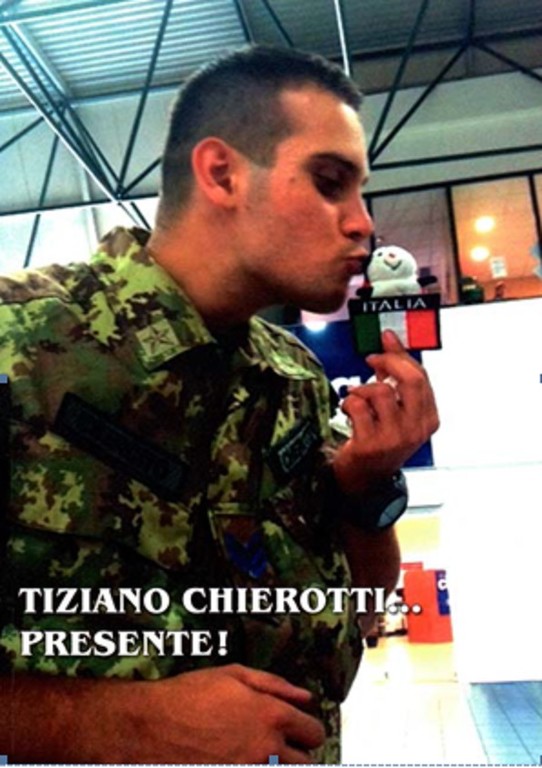 Seguirà la conferenza di presentazione del libro “Tiziano Chierotti... presente!” a cura dell’Associazione Tiziano Chierotti Onlus. Il testo ricostruisce la vita del giovane alpino del 2° Reggimento di Cuneo, caduto a Siav in Afghanistan il 25 ottobre 2012, dopo aver realizzato per soli due mesi il suo sogno di far parte di una missione di pace, in soccorso di un popolo martoriato. Ogni pagina vibra di forti emozioni, grazie alle testimonianze dirette di parenti ed amici, compagni di scuola e soprattutto commilitoni: ognuno ricostruisce come in un puzzle variamente colorato il profilo di un Grande Amico, dalla personalità vibrante, solare eppure normalissima. Un ragazzo generoso, allegro, sensibile, che sembra aver avuto la percezione di dover sfruttare al meglio, sempre e solo per gli altri, il breve arco della sua esistenza terrena. Il libro stesso quindi ha innanzi tutto lo scopo di mantenere vivo il legame con Tiziano, alimentando il seme di gioia e di altruismo in chi lo ha conosciuto, e magari permettere a molti altri di diventare suoi amici. A tutti, infatti, ma specialmente ai giovani, Tiziano sembra ripetere che vale la pena vivere per i propri ideali, non mollare mai a qualsiasicosto, andare controcorrente in un mondo molto spesso superficiale ed egocentrico, non lasciarsi prendere dalla paura o dallo scoraggiamento, ma aprire sempre la porta alla speranza. Come lui diceva sempre: “Dai ragazzi, che ce la facciamo tutti!”.