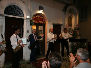 Si è svolta con particolare riuscita la serata inaugurale di "Affabulando in Musica" 2017, la rassegna letteraria di piazza del Capitolo promossa da Accademia della Pigna, Circolo Ligustico e Centro Stan Kenton. Davanti ad un folto pubblico, attento ed entusiasta, si è esibito il Midnight Saxophone Quartet con un programma di musica cameristica interpretato in maniera eccellente. Nell'intervallo del concerto il Cancelliere dell'Accademia Alberto Guglielmi Manzoni ha letto, con la sua consueta arte oratoria, alcuni racconti sul sax e sul jazz. Gran finale con la partecipazione, fuori programma, della soprano giapponese Yuko Boverio nell'interpretazione di una intensa "Ave Maria". Applausi a scena aperta. Una serata senz'altro speciale che ha decretato l'inizio della stagione estiva in Piazza del Capitolo, tra libri, note ed incanto architettonico nella Pigna di Sanremo. Nella photo-gallery sono immortalati alcuni momenti della magica serata.