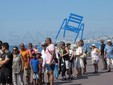 La città è invasa dai turisti che affollano le spiagge e partecipano alle cerimonie. Una partecipazione corale, anche emotiva, per alcuni poco più di un’attrazione: molti scattano foto e selfie, ma a riportare tutti con i piedi per terra l’altissimo numero di poliziotti e soldati che pattugliano le strade, bloccano le persone indirizzandole verso percorsi obbligati, impefdiscono ogni afflusso veicolare sulla Promenade des Anglais, chiusa al traffico dalla notte. Fra poco toccherà alla pattuglia acrobatica sorvolare la città, poi scenderà la sera.