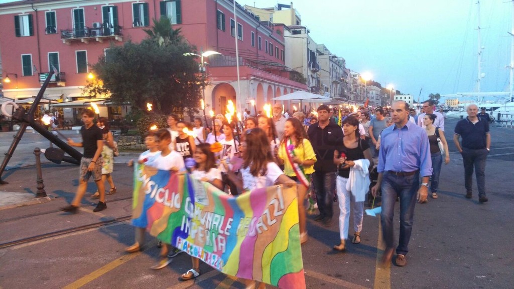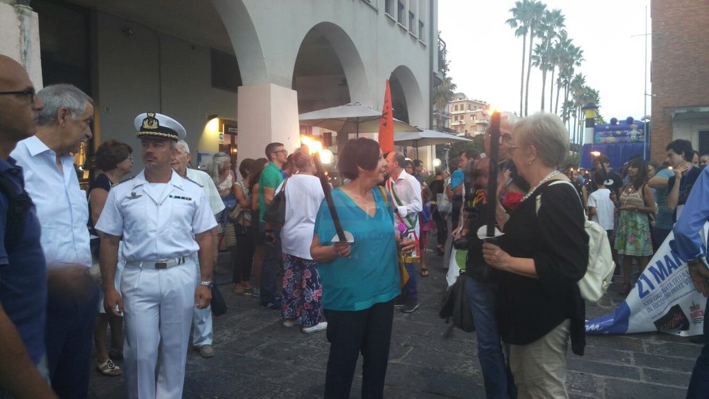 Molto partecipata la fiaccolata che si è svolta questa sera a Imperia, in memoria delle vittime innocenti di mafia e a sostegno di tutti coloro che operano in ogni ambito, politico, economico-lavorativo e sociale per difendere la pace, la giustizia e la legalità. La manifestazione, a 25 anni dalle stragi di Capaci e via D'Amelio, in cui morirono i magistrati Giovanni Falcone e Paolo Borsellino, e gli uomini e le donne delle loro scorte, è stata organizzata per la quinta volta dal presidio imperiese di "Libera" e dal Consiglio Comunale dei Ragazzi, con il patrocinio della Prefettura, della Provincia e del Comune di Imperia.