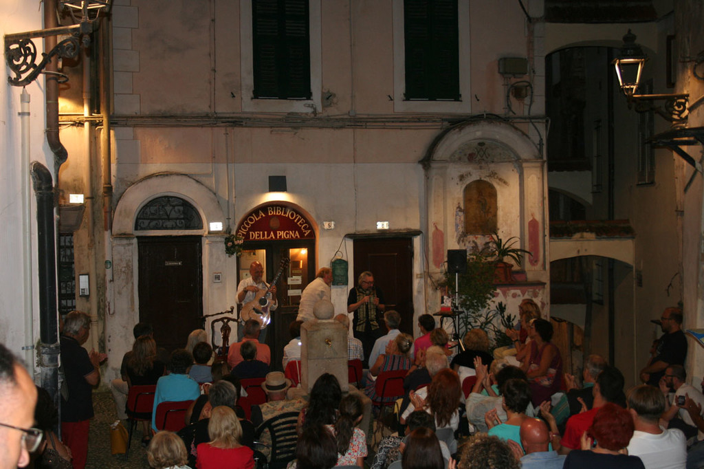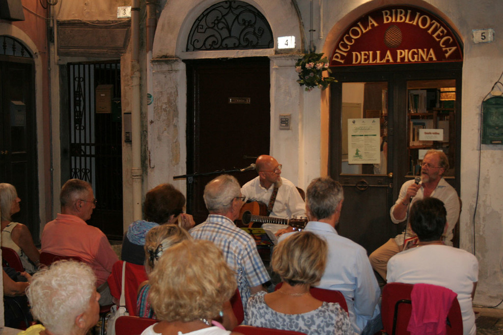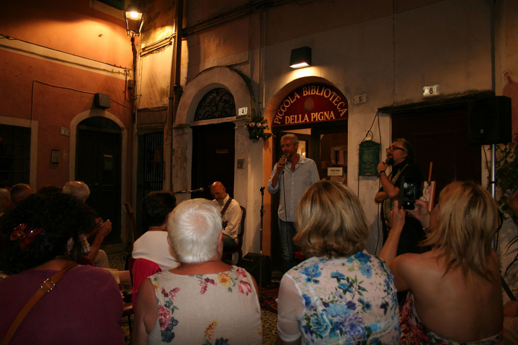 Si è svolta con straordinario successo la serata dedicata a Fabrizio De Andrè in piazza Capitolo, su iniziativa dell'Accademia della Pigna con la collaborazione dell'associazione "Et Ventis Adversis". La piazzetta era gremita di pubblico per assistere alla presentazione del libro "De Andrè, maledetti poeti" di Miro Renzaglia, giornalista e scrittore romano specializzato in autori "scomodi".