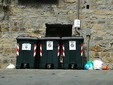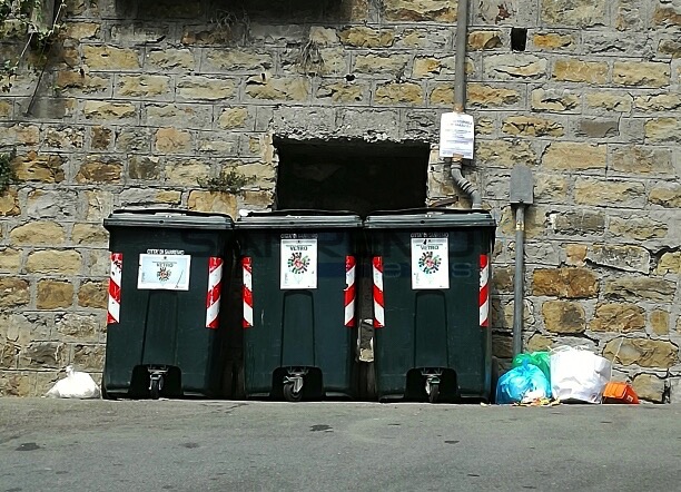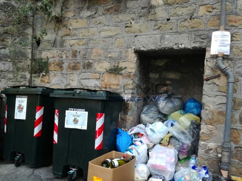 Sanremo: spazzatura di ogni genere e anche un carrello della spesa dai bidoni del vetro in zona chiesa Russa (Foto)