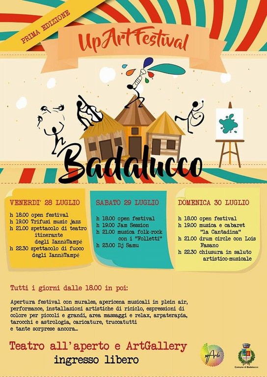 Badalucco si prepara per l'UpArt Festival, una tre giorni di eventi dedicati a tutto ciò che è arte. Da venerdì 28 luglio a domenica 30 luglio, ogni giorno a partire dalle 18 si terranno diversi appuntamenti ed iniziative ad ingresso libero che vedranno coinvolti il teatro all’aperto e l’artGallery del paesino della valle Argentina.