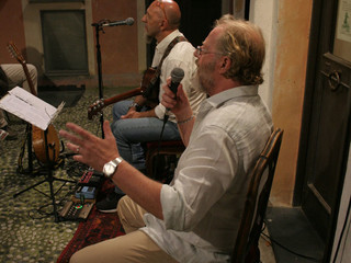 La verve discorsiva del relatore è stata peraltro punteggiata da preziosi interventi musicali di Mauro Vero, chitarrista e cantante imperiese, che ha riproposto alcune delle più significative canzoni di Faber. Una serata ricca di spunti, una diversa lettura del cantautore genovese, in bilico tra poesia e musica. Il pubblico ha manifestato entusiasticamente l'apprezzamento dell'iniziativa. "Affabulando", dopo una settimana di pausa, riprenderà mercoledì 2 agosto con una serata dedicata alla poesia vernacolare del grande Totò.