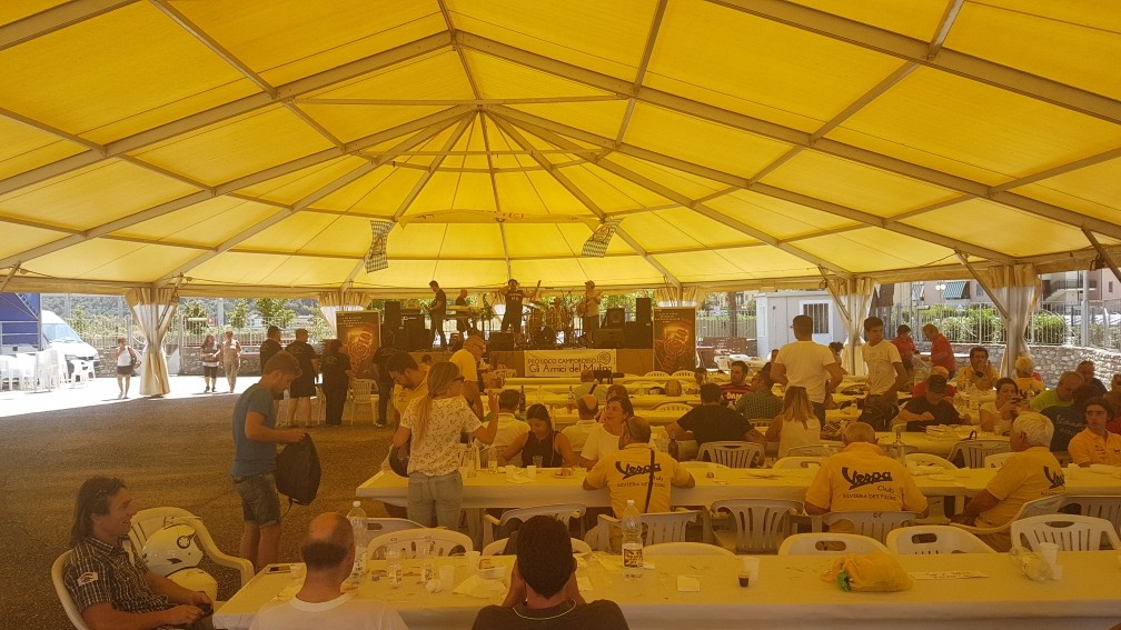 Partiti da Camporosso hanno percorso le vie di Apricale, Isolabona, Perinaldo per rientrare presso il Palabigauda (nuovamente Camporosso). Ad accoglierli le note live della Nomadi Tribute Band torinese "le Dimensioni".