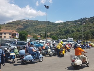 Le "principesse dalle marmitte sonanti" hanno sfilato nei 50 chilometri di percorso panoramico nell'entroterra imperiese in occasione del secondo Vespa raduno Nazionale .