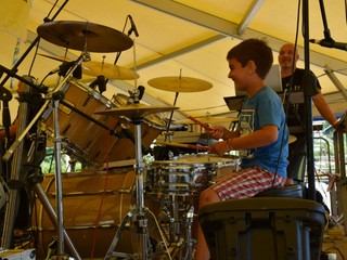 E per finire un fuori programma: il piccolo neo batterista Andrea, 7 anni, è salito sul palco a battesimo dell'esordio in un vero live gentilmente concesso dai ragazzi della band.