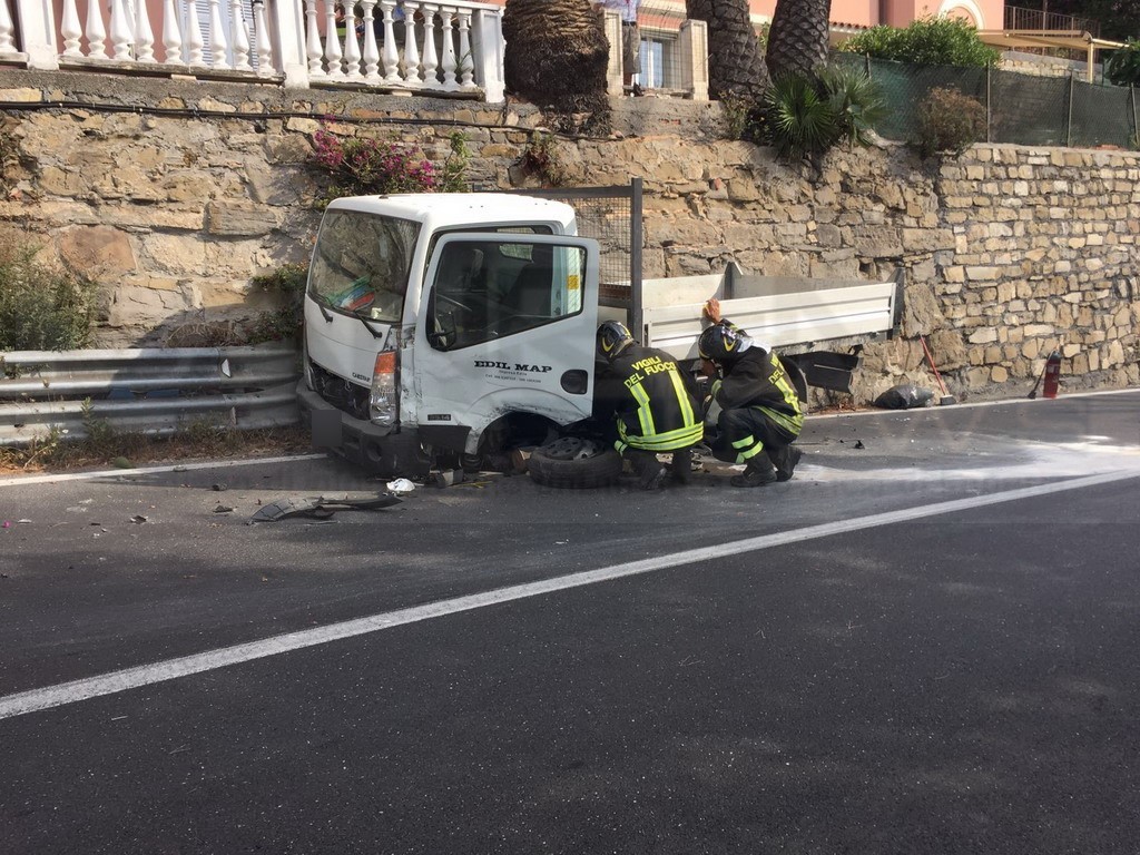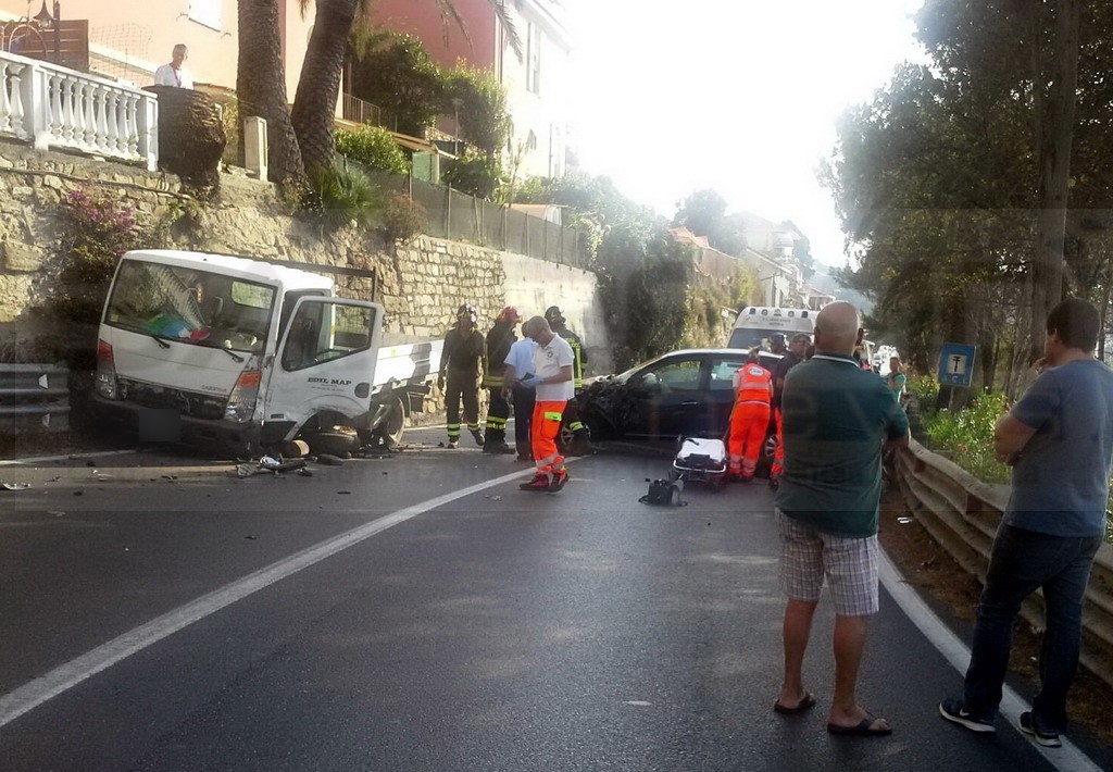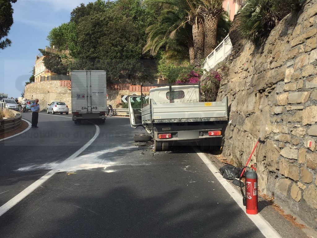 Imperia: incidente sull'Aurelia nella zona del Prino, 3 feriti e strada chiusa al traffico (Foto)