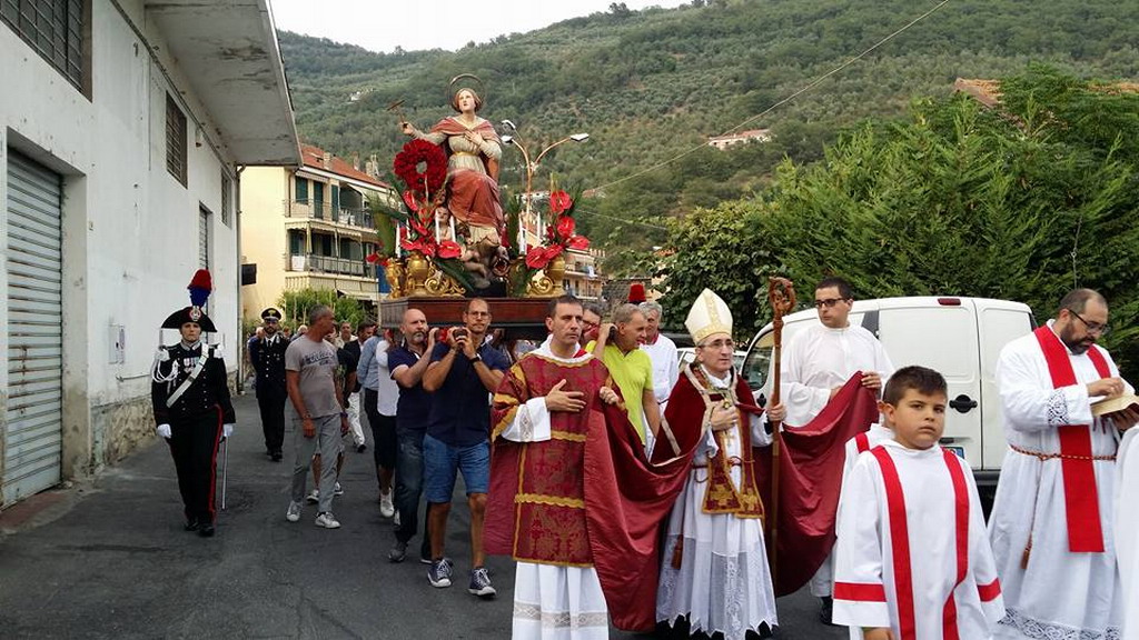 Don Matteo Boschetti il Parroco di Pontedassio rivolge un sentito ringraziamento al comandante e ai militari dell'Arma dei Carabinieri presenti alla celebrazione liturgica e alla processione per il servizio di rappresentanza e per il servizio di ordine pubblico per aver garantito il regolare svolgimento delle Celebrazioni.