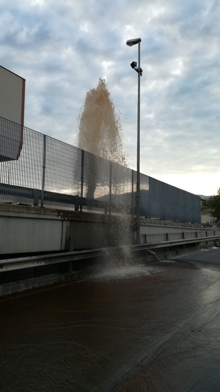 La fonte d'acqua zampillante adesso è oggetto di intervento da parte dei tecnici specializzati del servizio idrico.