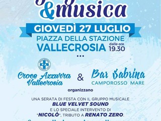 La Croce Azzurra di Vallecrosia in collaborazione con il Bar Sabrina di Camporosso Mare e con il Patrocinio dei comuni di Vallecrosia e Camporosso, organizzano una serata gastronomica a base di carne alla brace e musica dal vivo a cura del gruppo musicale Blue Velvet Sound.