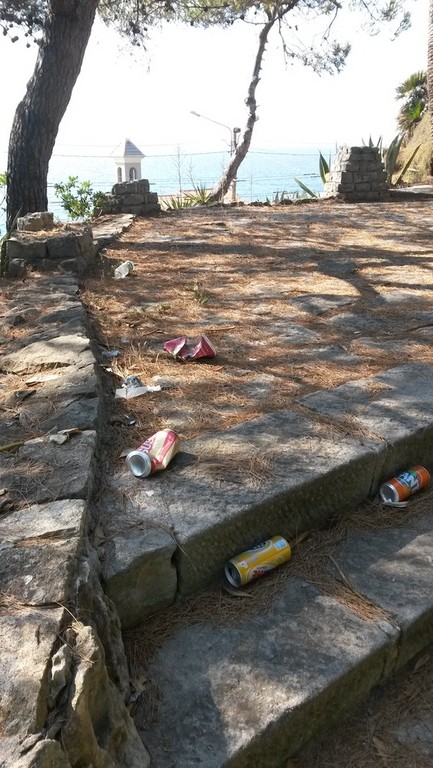 "Frequento la città di Bordighera dal 1971: vi ho sempre passato le mie vacanze, dapprima con il mio fidanzato e la sua famiglia che me l'hanno fatta conoscere ed amare, poi con i miei figli ed ora con i nipotini in quanto la considero una della più gradevoli cittadine della Liguria. Non c'è nulla di più piacevole per mio marito e me che passeggiare la mattina lungo la via Romana per arrivare ai giardini di Capo Ampelio e poi agli scogli sottostanti. Peccato che il magnifico panorama sia quello documentato dalle foto che ho scattato domenica scorsa. Credo che l'indegna inciviltà di coloro che gettano i loro rifiuti per le strade, nei giardini e sugli scogli sia eguagliata soltanto dall'altrettanto riprovevole incuria di coloro che dovrebbero provvedere alla pulizia degli stessi. Faccio notare che ho scattato le foto dopo aver osservato questo pietoso stato per giorni e giorni e che ci troviamo in piena stagione turistica! Non ho fotografato la via Romana ma i cumuli di foglie secche che stazionano sui marciapiedi per settimane sono uno spettacolo altrettanto indecoroso. Credo che ogni ulteriore commento sia del tutto inutile. Le foto parlano da sole".