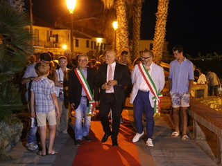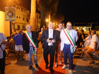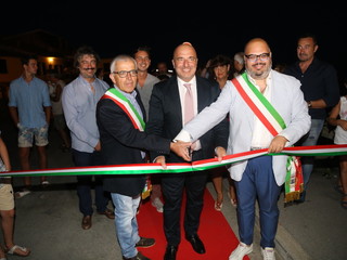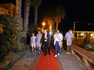 Taglio del nastro stasera sul confine tra Riva Ligure e Santo Stefano al Mare, unite dal Red Carpet della Regione Liguria. I mezzo ai due sindaci Giorgio Giuffra ed Elio Di Placido, c'era l'assessore regionale al turismo Gianni Berrino.