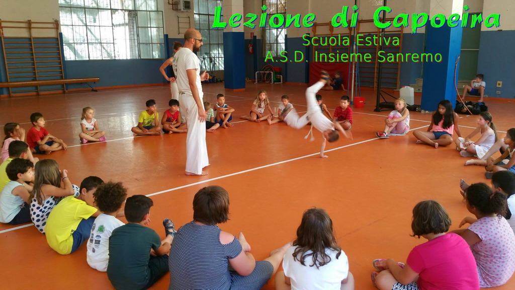 Al centro estivo dell’associazione ‘Insieme’ di Sanremo c’è anche il corso di Capoeira, compreso nella retta per tutti i bambini iscritti. Il corso si tiene tutti i mercoledì dalle 15, nella palestra della scuola elementare di via Volta, sede della scuola estiva ed è tenuto dagli istruttori Mauro Biriba Ridolfi e Claudia Ferra.