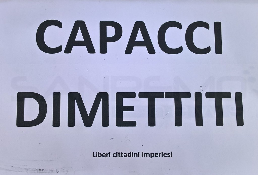 “Capacci dimettiti”: è questo il testo di una serie di fogli, apposti sotto i tergicristalli delle auto parcheggiate di fronte al Comune di Imperia. Sotto c'è una firma, ovvero 'Liberi cittadini imperiesi'.