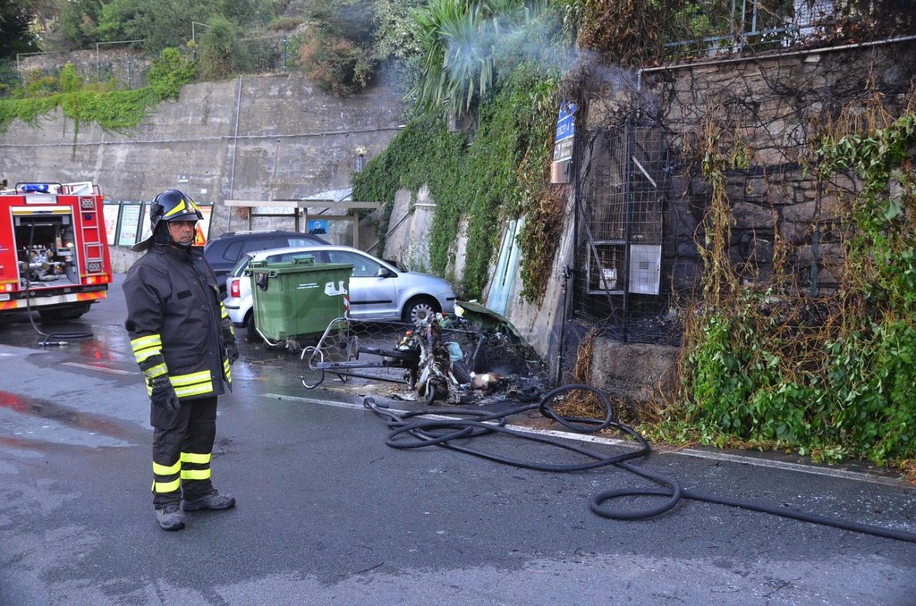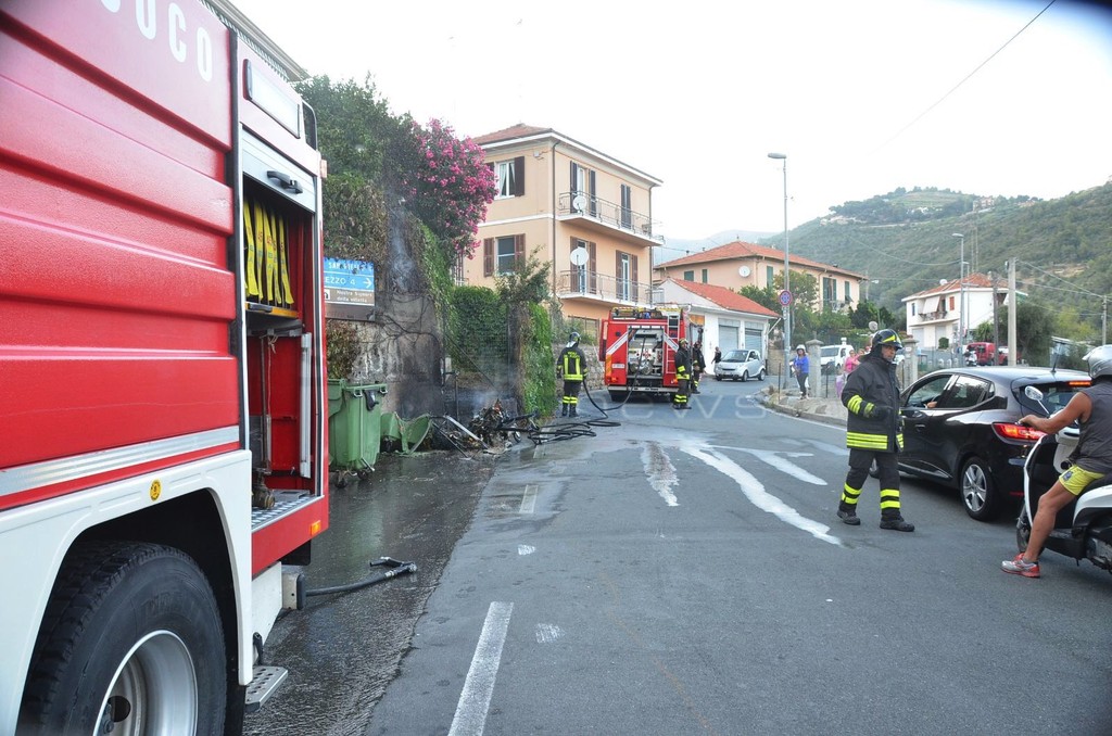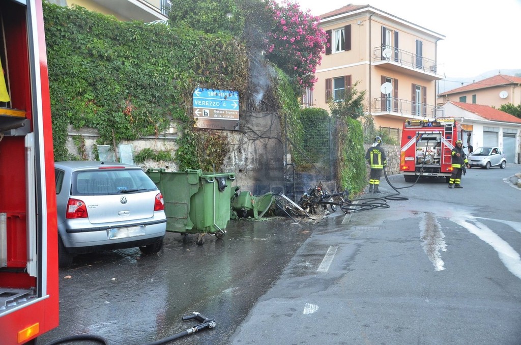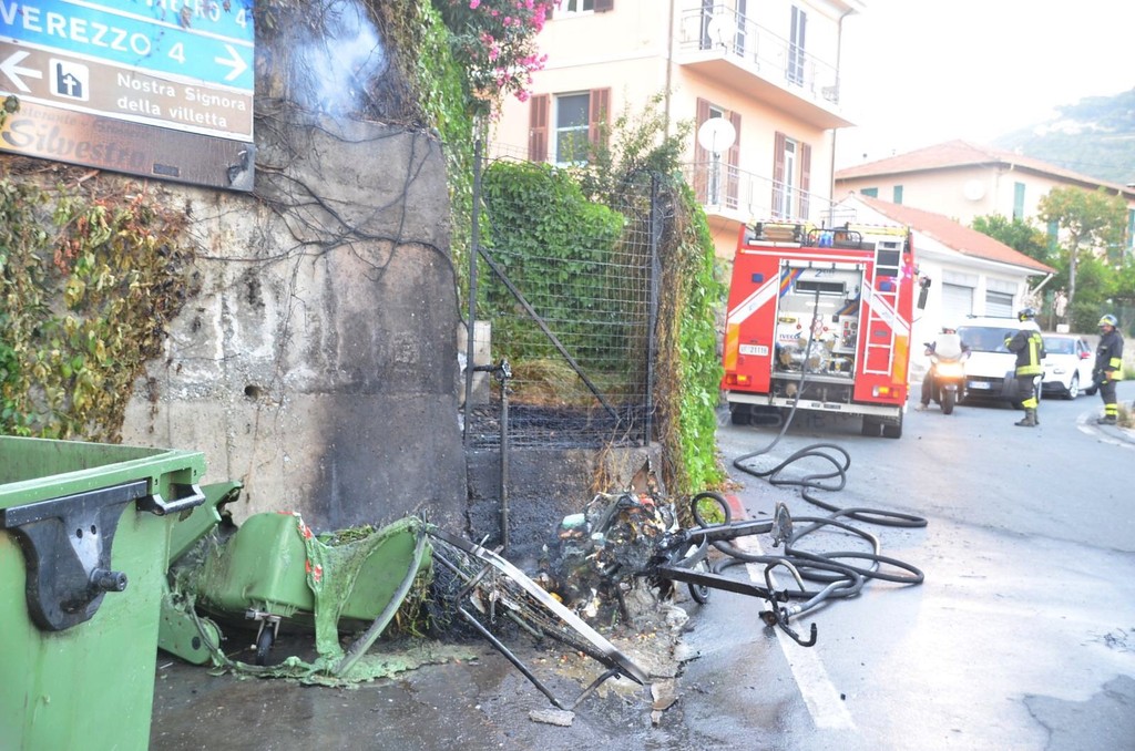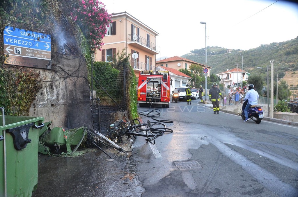 Sanremo: a fuoco un cassonetto in via Duca degli Abruzzi vicino a un tubo del gas (Foto e Video)