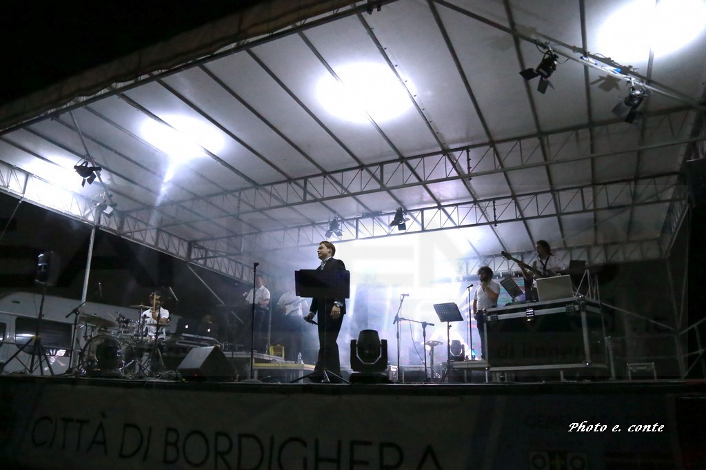 Grande successo ieri sera a Bordighera, ai Giardini Lowe, per il nuovo spettacolo estivo del tenore Davide Pastorino accompagnato dall'orchestra Portofino Band, composta da otto elementi ed arricchita dall’intervento di due ballerine.
