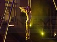 Lo spettacolo ha visto molti turisti e residenti osservare le evoluzioni, con i volteggi dei protagonisti sospesi nel vuoto, che hanno creato atmosfere di grande effetto a volte diventando una 'goccia' a volte fondendosi con i tessuti e poi volteggiando utilizzando la 'lira' accompagnati da musica intensa, un’esibizione dove la preparazione atletica si fodne con gli effetti di lce, musica e originalità delle figure e delle coreografie.