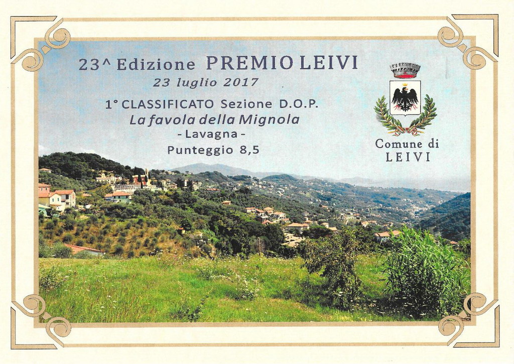 "Un’azienda giovane, un produttore appassionato, un’attenta gestione di ogni passaggio. È il biglietto da visita de 'La Favola della Mignola', realtà olearia di Lavagna che ha vinto il premio Leivi 2017, nella categoria riservata all’olio DOP Riviera Ligure. L’evento del 23 luglio scorso ha visto la decisa affermazione del nostro recente consorziato, che ha presentato un olio DOP Riviera Ligure menzione Riviera di Levante capace di convincere una severa giuria ottenendo una valutazione elevata presso il panel di assaggio. Il Premio Leivi è una manifestazione ormai solida e radicata, attenta alla realtà della Liguria di Levante, a partire dal mantenimento del territorio in relazione ai riconoscimenti conferiti alle campagne meglio gestite.