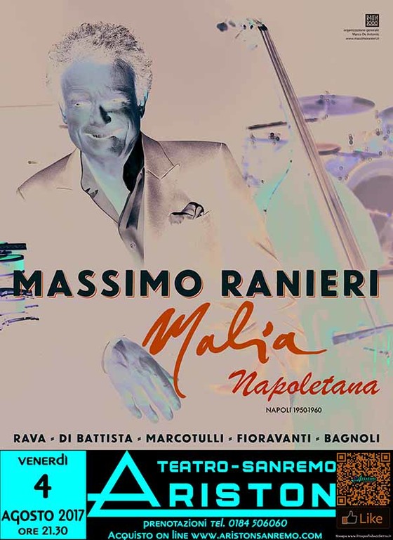 Venerdì 4 agosto alle ore 21.30 al Teatro Ariston Massimo Ranieri in “Malìa Napoletana”. “Malìa è il mio omaggio jazz a Napoli” - con queste parole Massimo Ranieri ha presentato il suo progetto realizzato lo scorso anno. Non un semplice omaggio ma un ennesimo tributo a quelle canzoni che da sempre sono nel cuore del cantante partenopeo.