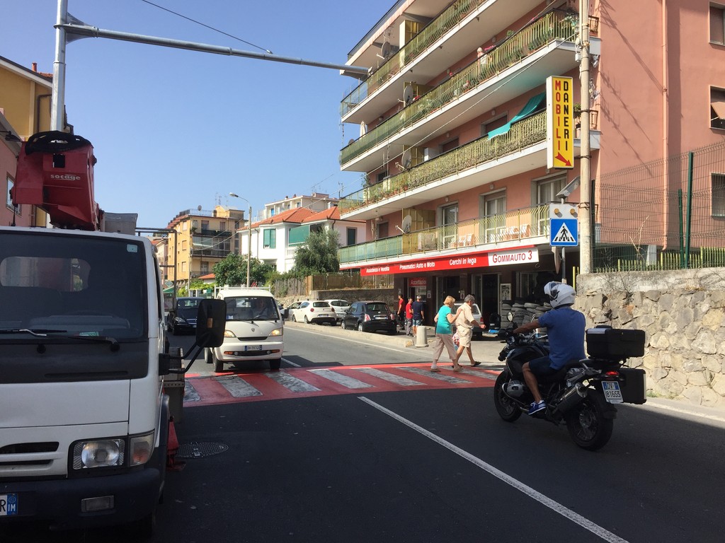 Questa mattina è stato attivato il nuovo semaforo sull'Aurelia ad Arma di Taggia. In questi giorni è stato installato il nuovo impianto semaforico su via del Colle ad Arma di Taggia. Si tratta di un’opera molto attesa dagli abitanti della zona. In passato, il comitato Pro Aurelia avviò con questo scopo una raccolta firme che si chiuse con ben 350 adesioni.