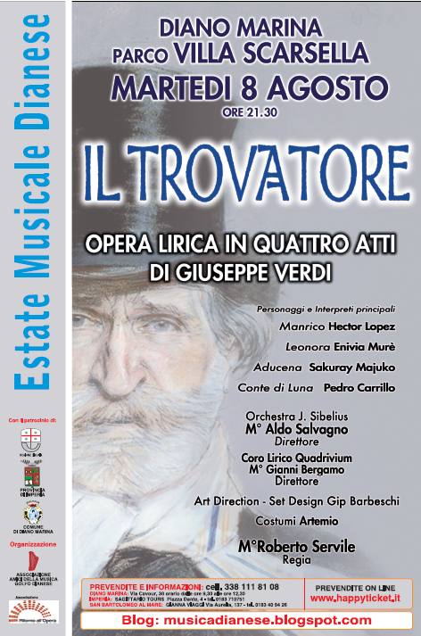 Sempre a Diano Marina, nell'ambito dell'Estate Musicale Dianese, al Trovatore farà seguito, nella serata di mercoledì 16, un'altra grande opera di Giuseppe Verdi, "La Traviata". Trovatore e Traviata, insieme al Rigoletto, formano la famosa trilogia popolare di Verdi.