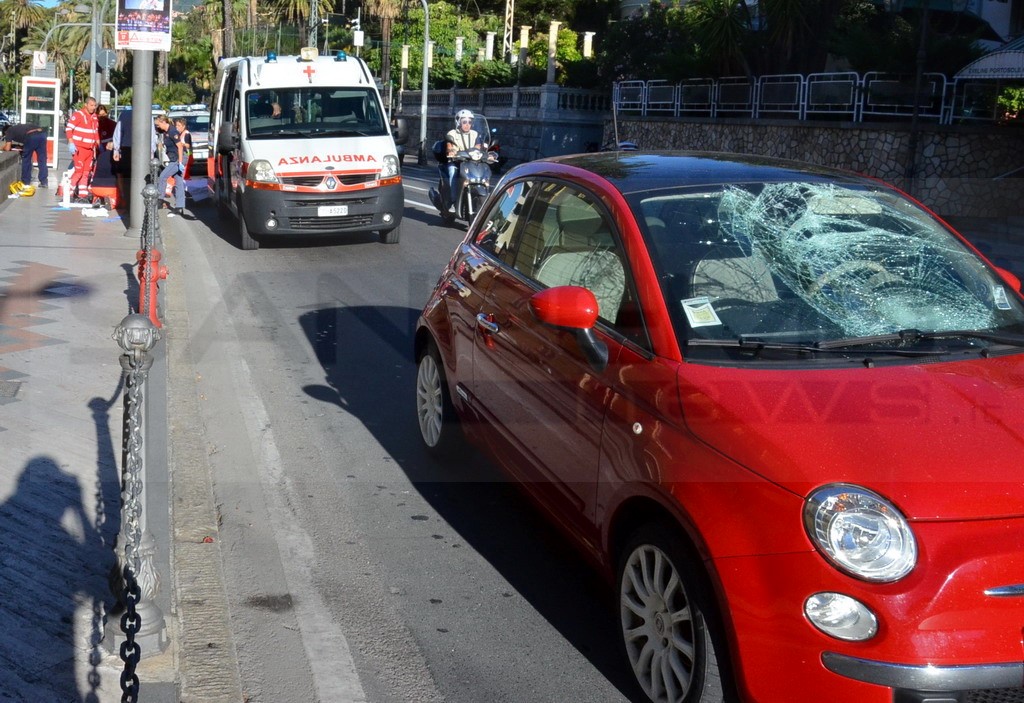 Brutto incidente questa mattina a Sanremo, in corso Cavallotti. Una donna anziana, di circa ottant’anni è stata investita mentre attraversava la strada sulle strisce pedonali di fronte all’ex tribunale, da una Fiat 500 rossa, condotta da un uomo che viaggiava in direzione Genova