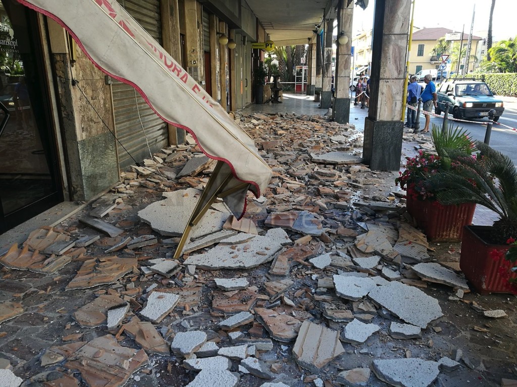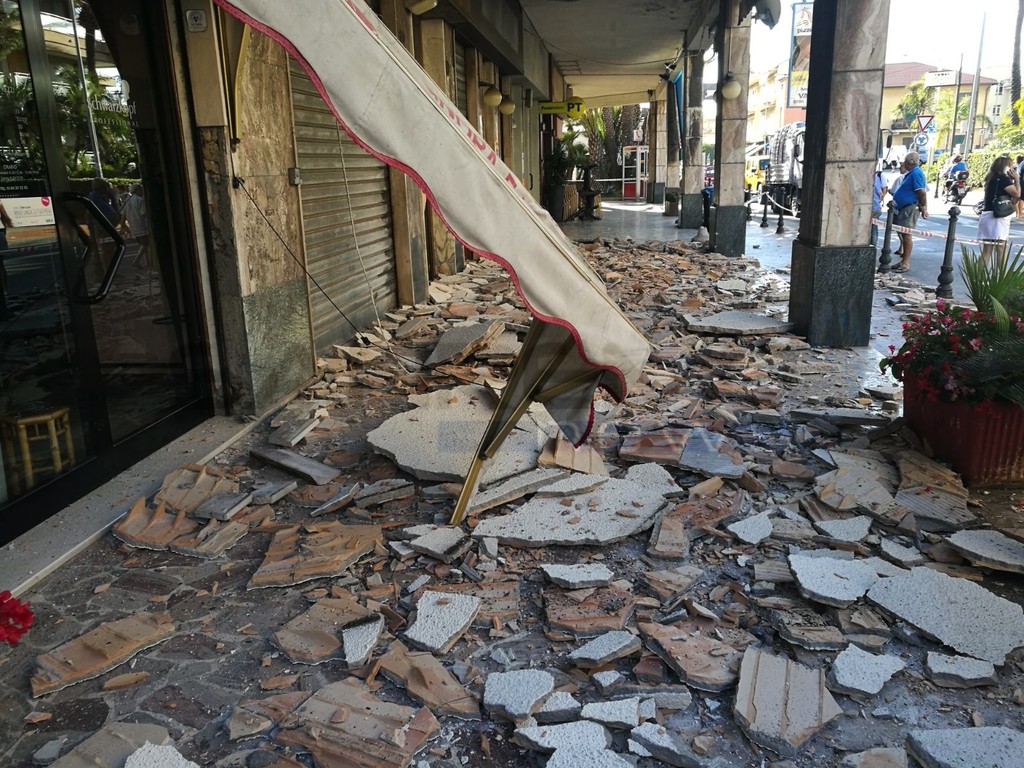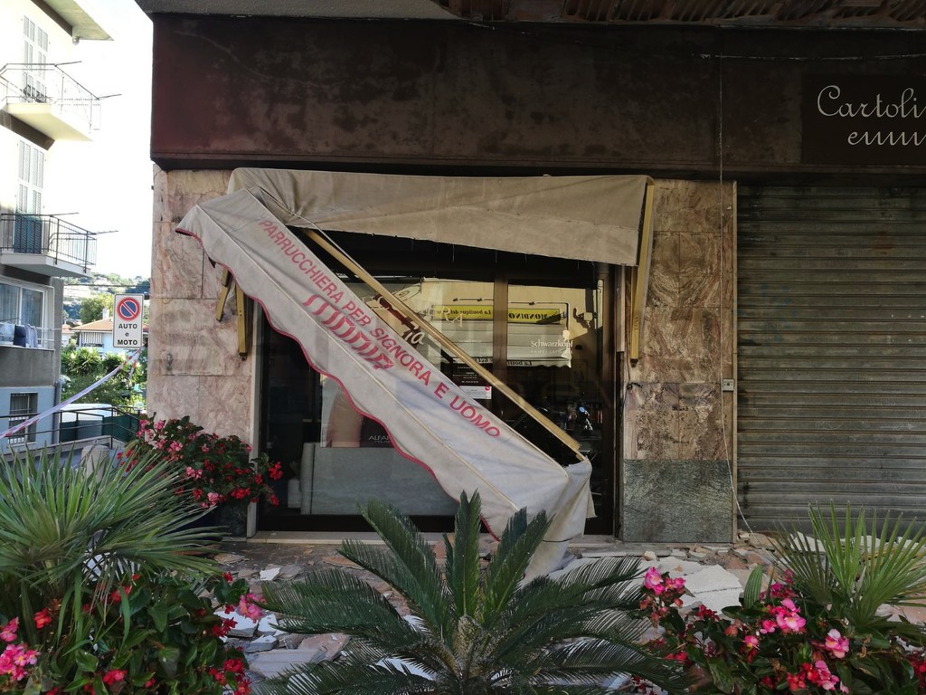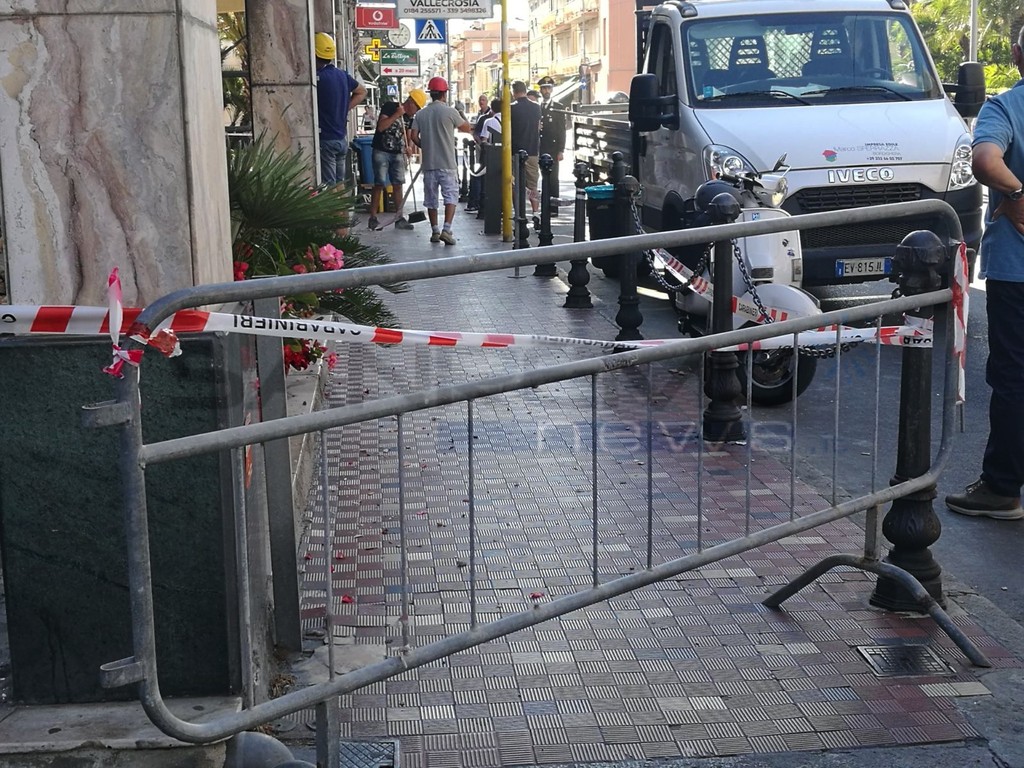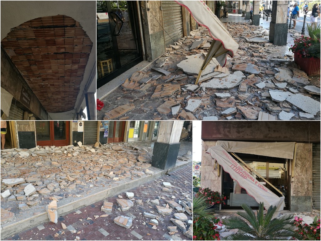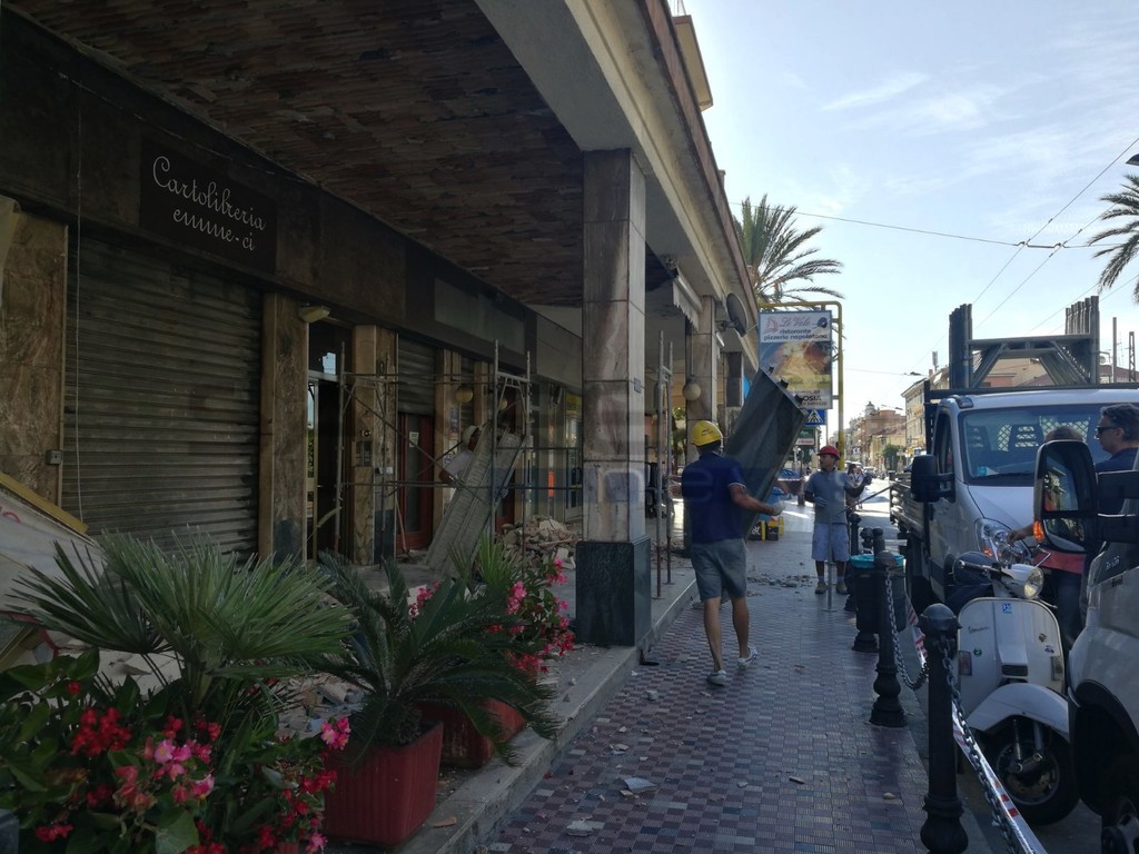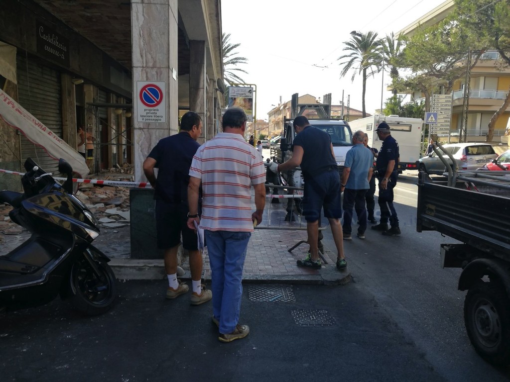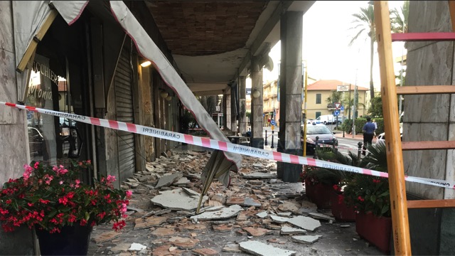 Bordighera: tragedia sfiorata all'alba, crolla il controsoffitto sotto i portici a Piani di Borghetto (Foto e Video)