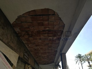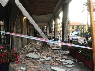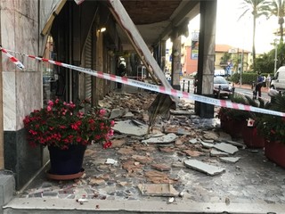 Bordighera: tragedia sfiorata all'alba, crolla il controsoffitto sotto i portici a Piani di Borghetto (Foto e Video)