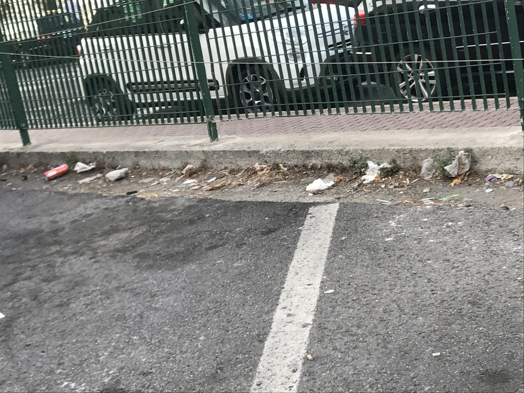 Capisco che gli italiani siano maleducati e che i francesi facciano liberamente tutti i loro porci comodi (vista anche la totale assenza della polizia municipale e la considerazione che hanno di noi), però sembra che questo parcheggio non veda una scopa da anni luce!