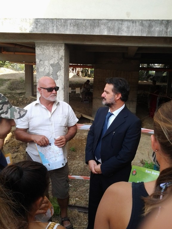 Valerio Urso, Sindaco di San Bartolomeo al Mare, ha salutato così oggi il primo gruppo dei partecipanti alla visita guidata "Il Giovedì dell'Archeologo" alla Mansio Romana del sito della Rovere. Un appuntamento particolarmente importante, perché, oltre a consentire ad un folto numero di persone di visitare l'area (un centinaio, divise in 4 gruppi), ha sancito la fase finale degli interventi previsti in questa stagione estiva, che hanno confermato l'esistenza di un sito pluristratificato che risale addirittura all'età del bronzo, cioè a circa 3.500 anni fa.