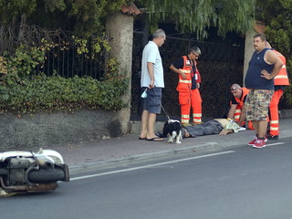 Sanremo: cade con lo scooter in via San Francesco, soccorso dal 118 e dalla Croce Rossa