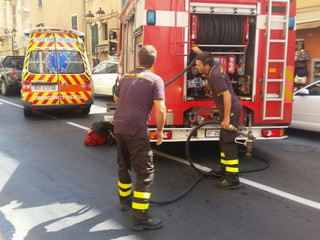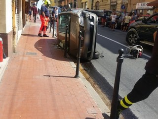 Ventimiglia: si capotta con l'auto in corso Genova, intervento dei Vigili del Fuoco e della Croce Verde (Foto)