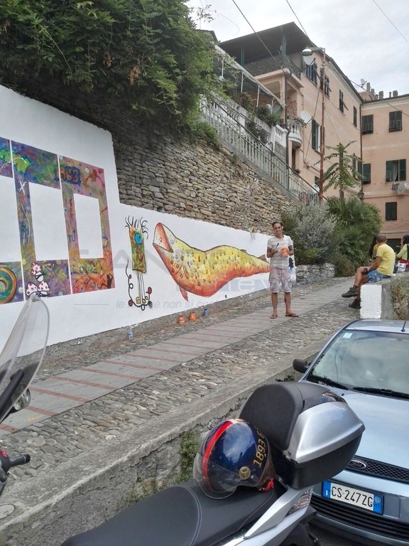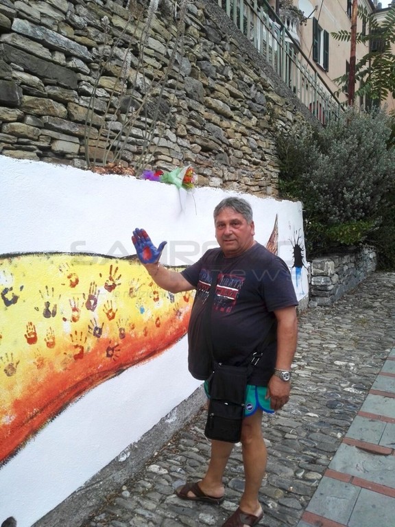 Dopo le critiche, le proteste e le polemiche qual è stato il clima in paese? "In questi giorni di lavoro mi sono sentito accolto la gente veniva a trovarmi, si fermava a vedere come procedeva, mi portavano focaccia e sardenaira, da bere, il caffè. - sottolinea Soriani - Insomma è stato come sentirsi a casa. Sono contento che sia finita la tensione e che tutti gli abitanti abbiano collaborato. Sono stato molto felice ieri quando ho visto che gli anziani avevano iniziato a far festa per il murale. Mi sembrava di volare. E’ stata una bella emozione per tutti come doveva essere dall’inizio".