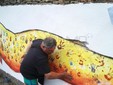 “Nella scritta ‘Badalucco’ ho voluto inserire tutte le associazioni legate al paese mentre lo stoccafisso, è fatto con le mani dei soli abitanti di Badalucco. Nella parte di sinistra ci sono tutte le date significative legate alla storia di questo paese. - racconta Soriani al termine del lavoro - Inoltre la gente ha potuto scrivere frasi di canzoni o semplicemente il loro pensiero del momento. Sono riuscito a coinvolgere il paese e per un momento avevo paura che non fosse più possibile pregiudicando così la buona riuscita dell’opera. Alla fine è stata una festa, come volevo che fosse".