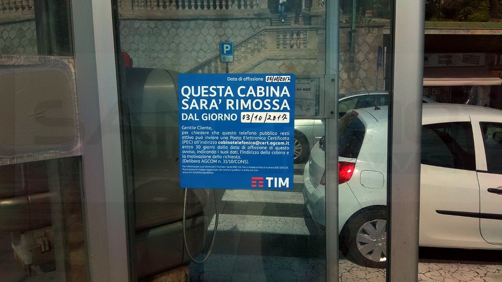 Pian piano la Tim le sta smantellando ed un pezzo di noi se ne va, ma era naturale con l’evoluzione dello smartphone che sta mandando in pensione lettere, cd e lettori mp3 che sembravano destinati a durare nel tempo. Una di queste è a Sanremo, in corso Imperatrice e, da alcuni giorni è apparso il cartello che annuncia la il suo smantellamento, il 4 ottobre prossimo.