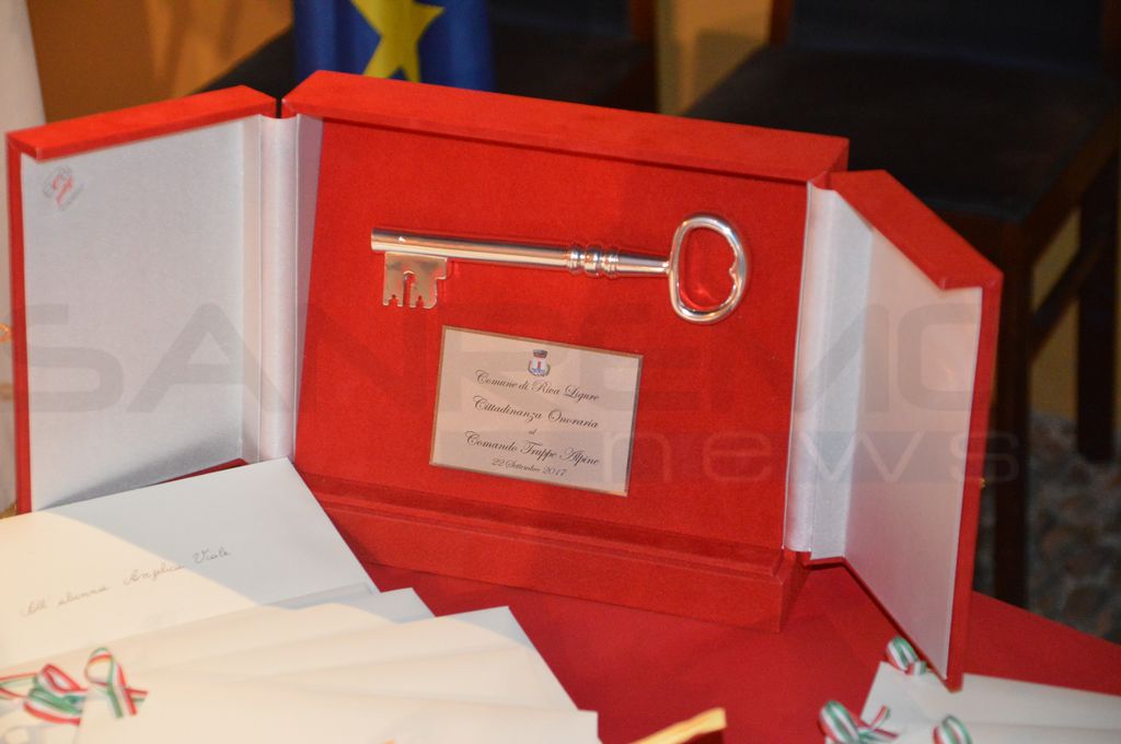 Grande partecipazione ieri sera a Riva Ligure per la tradizionale consegna delle benemerenze cittadine 2017 e il conferimento della cittadinanza onoraria alle Truppe Alpine. Cerimonia che rientra nei festeggiamenti di San Maurizio Martire che, come ogni anno, prevedono una serie di appuntamenti che culmina con il Consiglio comunale straordinario e solenne eccezionalmente convocato all’aperto in piazza Matteotti. Consegnati, quindi, ieri sera, la cittadinanza onoraria alle Truppe Alpine, il Premio Riva Ligure ed altre benemerenze a soggetti diversi che si sono contraddistinti in ambito sociale, scolastico e sportivo.
