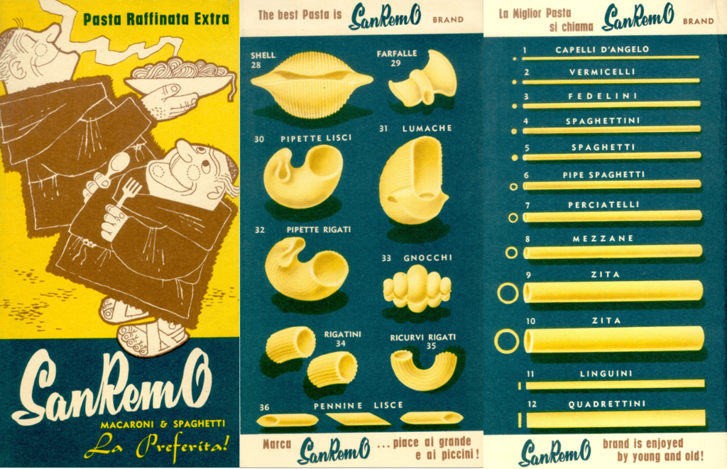 Poco, o nulla, si trova sulla genesi del nome. È scritto staccato, come a voler indicare la dedica a un Santo, ma, come i matuziani sanno bene, Remo non è santo, motivo per il quale il nome della nostra città è scritto attaccato, a differenza di San Romolo. Sul simbolo dell’azienda, inoltre, si vedono due frati intenti ad assaggiare la pasta, ulteriore indizio della pista sacra. Ma ciò poco toglie al valore della dedica. E, soprattutto, al contributo che la pasta “San Remo” dà alla diffusione del nome della nostra città nel mondo.