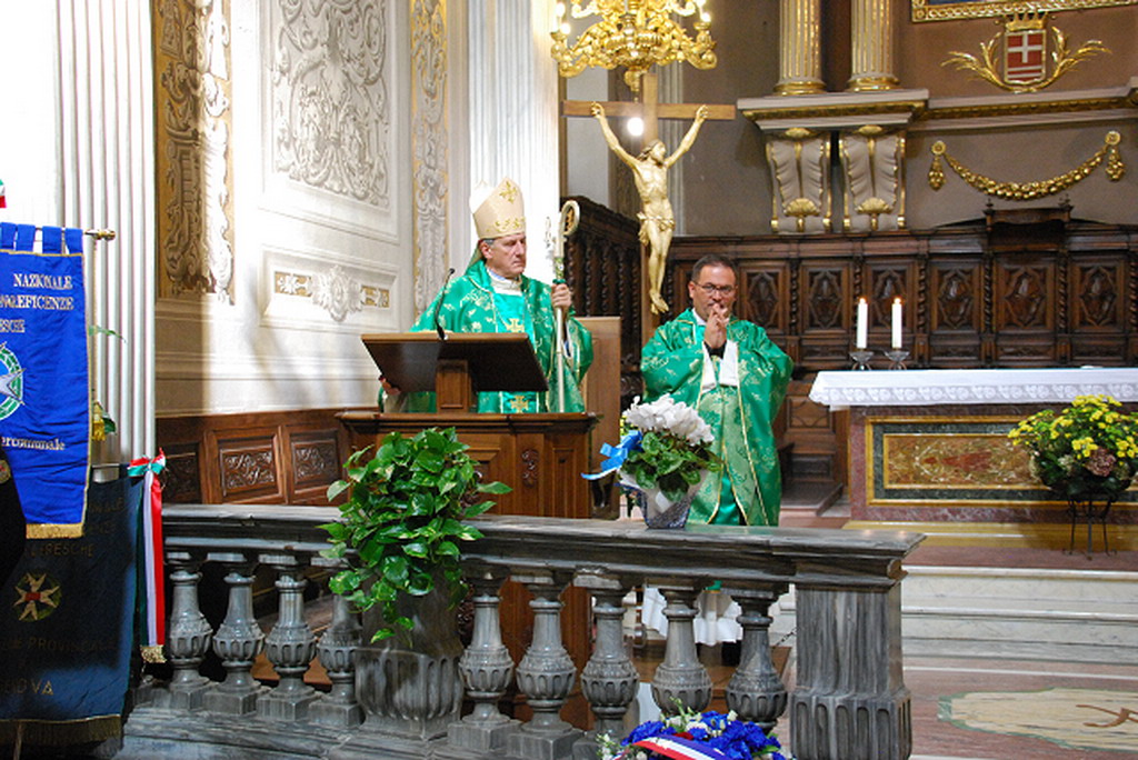 Alle ore 10 tutte le delegazioni, provenienti dal Piemonte. Liguria e Lombardia si sono ritrovate nella piazza principale di Cuneo, per assistere alla celebrazione della Santa Messa officiata dal Vescovo Piero Delbosco e da don Mauro, presso la Cattedrale. La chiesa era piena di Insigniti e Decorati di ogni Ordine e Grado: al Merito della Repubblica, del Sacro Militare Ordine di Malta, dell’Ordine Equestre del Santo Sepolcro, dell’Ordine Costantiniano.