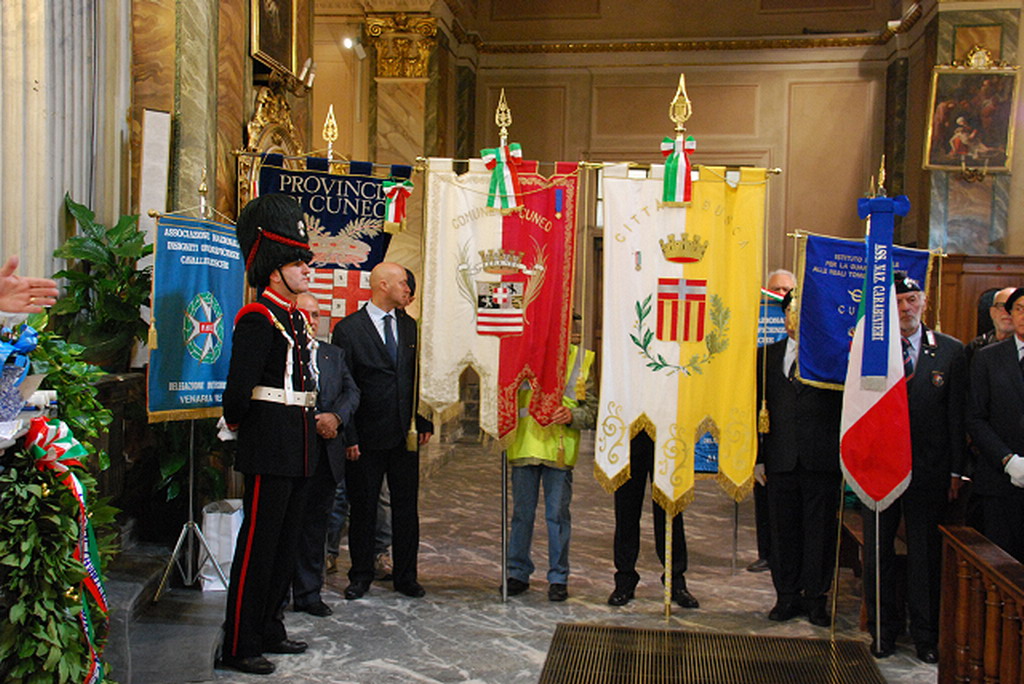 Numerose le Associazioni d’Arma, con i Granatieri di Sardegna, che con la presenza di due suoi componenti, sfoggiando l’alta uniforme, hanno creato un suggestivo scenario, presenti le asociazioni d’arma e combattentistiche dall’ANC (Ass.ne Naz.le Carabinieri) di Fossano, Cuneo, Borgo, dell’ANA (Ass.ne Naz.le Alpini), delle Guardie d’Onore alle reali tombe del Pantheon, della Confraternita della Misericordia di Cuneo.