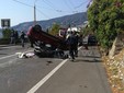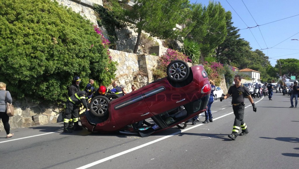 Incidente sull'Aurelia tra Ospedaletti e Sanremo, auto si ribalta dopo lo scontro con una vettura posteggiata (Foto e Video)