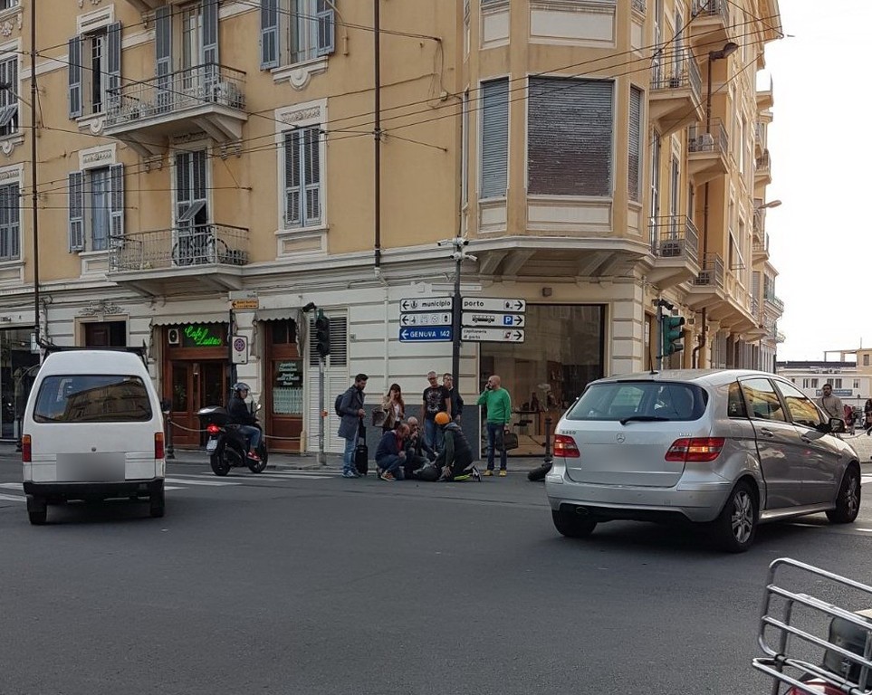 Sanremo: incidente stradale in via Roma, centauro ferito e trasportato in ospedale dalla Croce Verde (Foto)