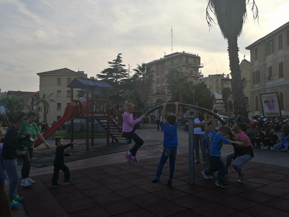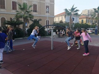 Doppia inaugurazione questo pomeriggio in piazza Roma, a Imperia. L' A.g.@. (Associazione Genitori @ttivi Imperia), grazie a una raccolta fondi attivata con i commercianti e conclusa a fine 2016, ha inaugurato i due giochi “orizzontali” inclusivi, che permetteranno ai bambini diversamente abili ed a quelli normodotati di giocare assieme.